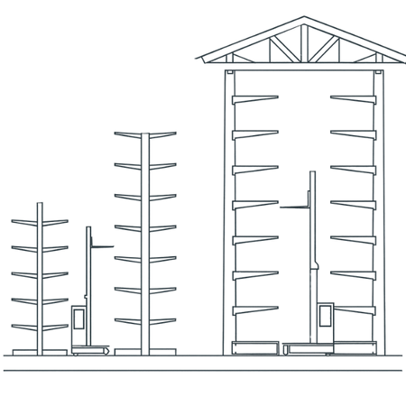 Les bâtiments autoportants en rayonnage sont des structures où le rayonnage lui-même sert d’ossature au bâtiment.